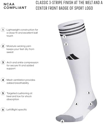Before you head out on the pitch, pull on these adidas soccer socks. The 3-Stripes are the last thing the competition will see just before you score. Airy mesh in key areas, moisture-wicking yarn and the over-the-calf length keep you ready for action.