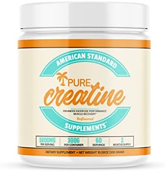 Creatine Supplement: American Standard Supplements offers 300 grams of Pure Micronized Creatine Monohydrate unflavored – 5 gram per serving, 60 servings per container, total of 2 months of supply.