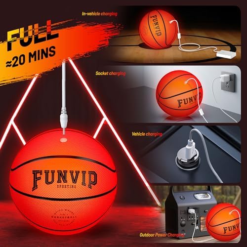 【🌟LONG-LASTING GLOW BASKETBALL】Experience the excitement of nighttime basketball with our rechargeable LED light up basketball. Designed for boys aged 7-13, this official size 7 (29.5″) glow basketball provides hours of glow, ensuring the game continues long after sunset. Perfect for kids, teens, and families alike.In order to maximize the performance of the luminous basketball, please ensure that the battery is fully charged before each use.