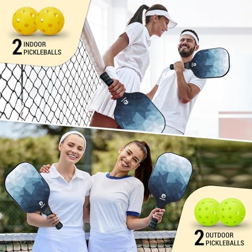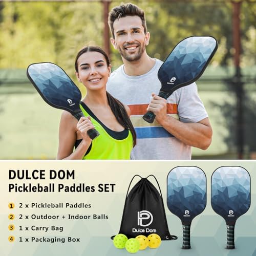 Home Products DULCE DOM Pickleball Paddles, USAPA Approved Fiberglass/Graphite Pickleball Set of 2/4 with Pickleball Paddles, 4 Pickleball Balls and Pickleball Bag, Pickleball Rackets Equipment for Beginners & Pros