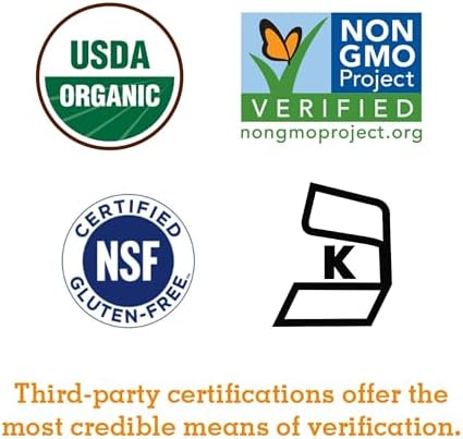 Certified USDA Organic, Non-GMO Project Verified, NSF Certified Gluten Free, Vegan & Kosher