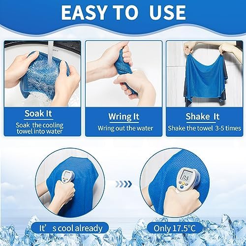 Easy to Operate: no complicated instructions, you just need to soak the neck cooling towel in cold water for about 1 minute (the colder the water, the better it cools, soaking the towel in ice cold water is better), then wring out water, next shake it for about 3-5 times, finally you can wear the towel on your neck to cool you down quickly