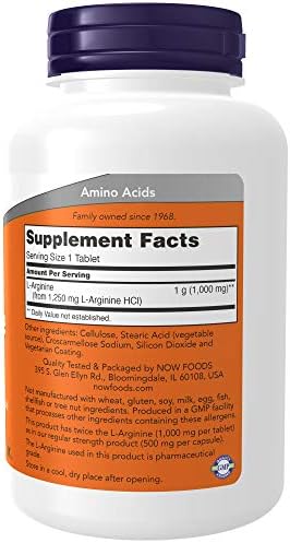 DOUBLE STRENGTH L-ARGININE: NOW offers this non-GMO, double strength L-Arginine supplement in 1,000 mg tablets.