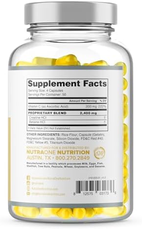 NutraOne CNSix Creatine Capsules Creatine HCL to Help Build Lean Muscle* (600mg – 200 Capsules)