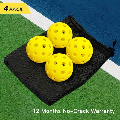 Portable & Convenient Storage: 4 pack of pickleball balls come in a mesh drawstring bag, making it easy to carrying, hanging, and storage. This allow you to spend more time playing pickleball and less time picking up scattered balls. The beautiful packaging makes it a perfect gift for pickleball lover.