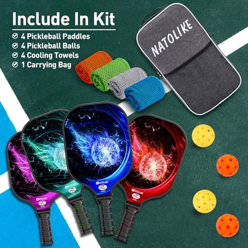 【Great Value Pickleball Set】NATOLIKE pickleball set includes 4 lightweight pickleball paddles, 4 pickleball balls, 4 cooling towels and 1 pickleball bag.