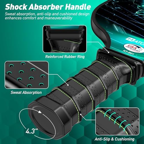 【Shock-Absorbing and Non-Slip Handle】NATOLIKE pickleball rackets handle with perforation, sweat absorption and cushioning. These great designs will improve comfort and playability during play. The spiral ridge design and non-slip material will provide players with excellent grip and maneuverability at all times.