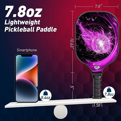 【USAPA Standard Size】Weighing only 7.8 ounces, our lightweight pickleball paddles give players excellent mobility. Larger surface surface (L: 10.63″ W: 7.8″) creates a larger sweet spot for more forgiveness, great for players still mastering precision. 4.3″ grip circumference and 5″ length fits most hands.